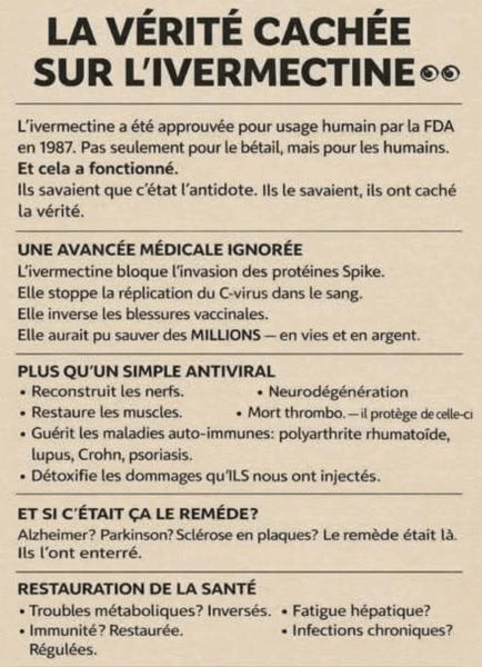 L’OMS classait jusque-là l’ivermectine parmi les médicaments « essentiels, sans danger et pouvant être utilisés à large échelle ». Mais le 31 mars 2021, elle recommande de ne pas l’utiliser chez les patients atteints de la Covid-19, sauf dans le cadre d’un essai clinique. Ce qui laisse le champ libre au tout vaccinal, avec un prétexte récurrent : il n’existe pas de traitement approuvé pour la Covid ni de traitement approprié disponible sur le marché. C’est le laboratoire Merk, qui produit la molécule, qui s’est employé à discréditer son propre médicament !