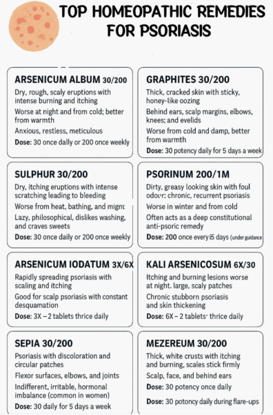 Le traitement allopathique est donc « local et prolongé » : les corticoïdes locaux et la vitamine D (Daivonex – de structure spatiale voisine de la cortisone !), la puvathérapie (les UV sont immuno-supresseurs), le Néotigason (Soriatane – qui a des effets dévastateurs au niveau du foie et des cheveux), la Ciclosporine ou le Méthotrexate, les anti TNF-alpha et les AC-anti Lymphocytes (anti-IL-17A) ont été essayés dans les formes graves de « psoriasis en plaques » !