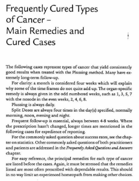 1/ La méthode du plussing, sorte de « perfusion du remède homéopathique » : le patient prend, chaque jour, de la semaine, pendant deux heures trente, une dizaine de cuillerées à café du remède choisi (donc, une dose tous les ¼ d’heure). En outre, on redilue et dynamise le remède un peu plus chaque jour. Lorsque le cas sera stabilisé, on pourra passer à la méthode des doses fractionnées : 4 prises par jour, un jour par semaine.