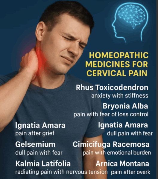 - CHU : Arnica comp. (traumatique) / Actea comp. (torticolis) / Kalmia comp. (Névralgie cervico-brachiale) / Thuya comp. (arthrose)