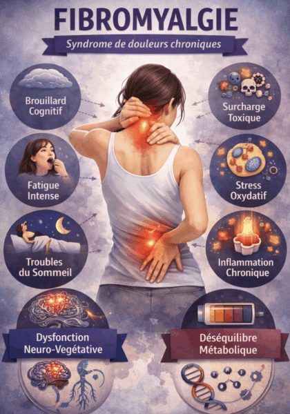 La fibromyalgie n’a pas d’image biologique spécifique, le BNS est le plus souvent hypo-floculant, la sécheresse domine (hypoAlb.) et les paramètres du pôle foie sont volontiers dissociés (hyper Alpha1, Cuivre, Mg / Hypo Bêta).