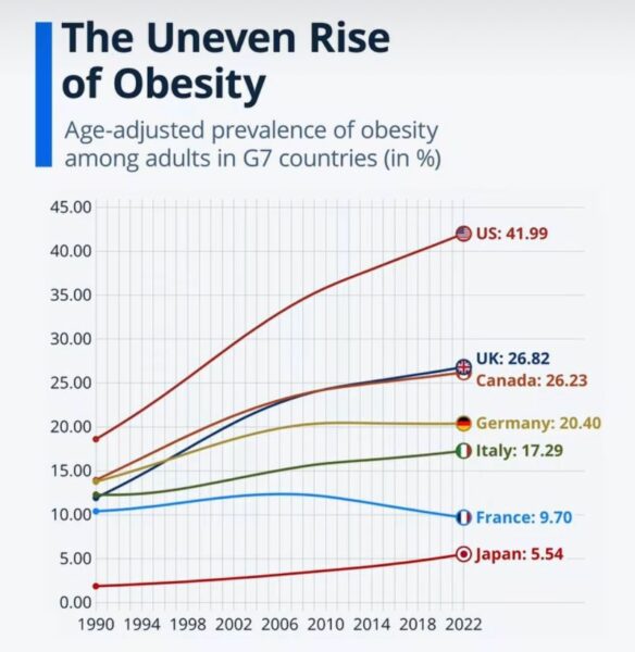 Les raisons de ces chiffres sont complexes, allant d’une mauvaise alimentation et d’un manque d’activité physique à une fragilité génétique (un environnement qui favorise les aliments transformés riches en calories et les modes de vie sédentaires).