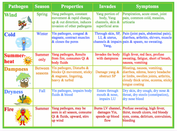 « Le FEU externe est l’énergie de l’été, elle attaque le haut du corps. Elle s’unit au Yang du corps et attaque l’énergie du Yin » (Lin Tchrou ch. 66). Trop forte, elle pénètrera successivement les trois foyers (Wei Qi, puis Iong, enfin Xue -> grave).