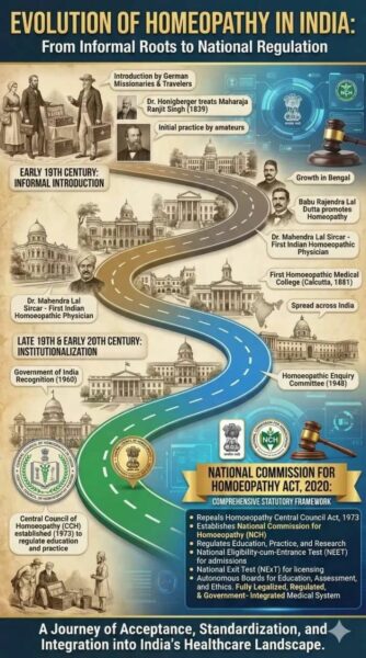 En 1973, le gouvernement indien a reconnu l’homéopathie comme l’un des systèmes nationaux de médecine et a créé le Conseil central de l’homéopathie (CCH) pour réglementer son enseignement et sa pratique. Désormais, seuls les homéopathes qualifiés BHMS peuvent pratiquer l’homéopathie en Inde.