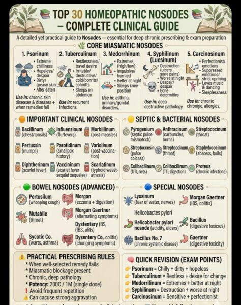NB. Les souches françaises (laboratoire Boiron) de ces remèdes ayant été passées à l’autoclave, elle n’ont pratiquement plus aucun effet : préferez les souches originales disponibles chez certains fournisseurs (exemple : lab. Schmidt-Nagel à Genève) …