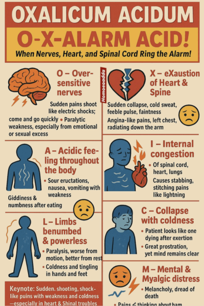 Son sel : Natrum oxalicum 6/8 DH, peut être proposé sur des situations où la tension nerveuse est somatisée.