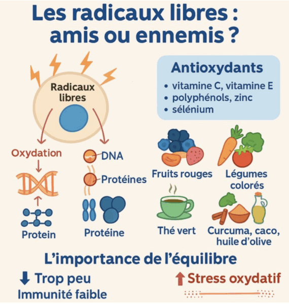 Toutefois, il faudra se méfier des effets paradoxaux des hautes doses d’antioxydants, car en cas d’excès, ils présentent tous un effet pro-oxydant. De plus, le bruit de fond de radicaux libres ne doit pas être supprimé. Nous avons vu leur utilité dans la défense anti-infectieuse. N’oublions pas que l’apoptose est aussi un phénomène utile qui supprime les cellules cancéreuses ou celles infectées par des virus.