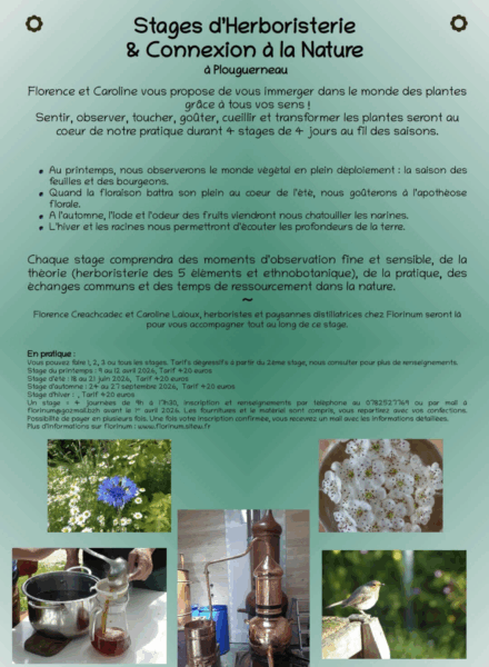 STAGE D’HERBORISTERIE ET DE CONNEXION A LA NATURE à PLOUGUERNEAU : En avril prochain nous organisons Caroline et moi un stage d’herboristerie et de connexion à la nature.